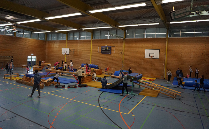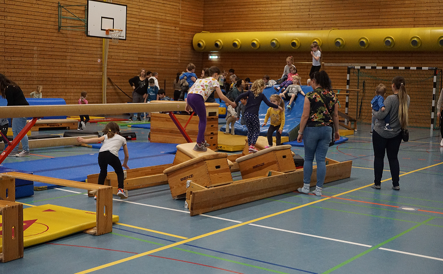Der Startschuss für viele Bewegungskarrieren findet oft im Eltern-Kind-Sport statt. Bereits für Kinder ab einem Jahr bietet die Kindersportschule dazu Sportangebote bei dem Kinder ihre ersten Bewegungserfahrungen in der Sporthalle machen können. Das gemeinsame Erleben und Meistern neuer Herausforderungen zusammen mit den Eltern stärkt nicht nur die Bewegungskompetenz der Kinder, sondern hat auch einen positiven Einfluss auf die Eltern-Kind-Bindung.