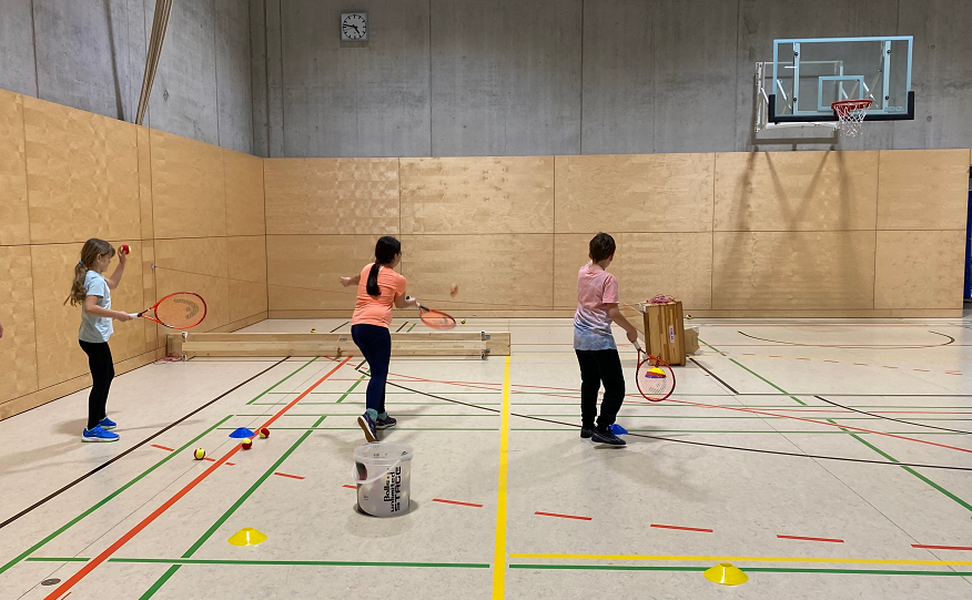 Die Kinder der Sport & Spielgruppen (ab 2. Klasse) am Freitag konnten in zwei ihrer regulären Sportstunden in die Welt des Tennissports eintauchen. Gestaltet wurden die Stunden in Zusammenarbeit mit dem Tennisclub Kornwestheim e.V. mit vielen unterschiedlichen Aufgaben rund um den Tennisschläger und -ball. Die Kinder hatten so die Möglichkeit sich im Tennis auszuprobieren und in die Sportart hinein zu schnuppern.