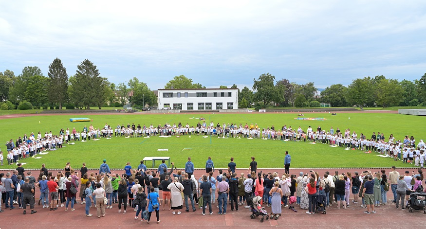 Am Dienstagmorgen, 02.07.2024 versammelten sich ca. 350 Vorschülerinnen und Vorschüler der Kindergärten aus Kornwestheim und Pattonville gemeinsam mit ihren Erzieherinnen und Erziehern zum traditionellen Einlaufen zur Titelmelodie von „Fluch der Karibik“ auf der Rundlaufbahn am Stadion in Kornwestheim.