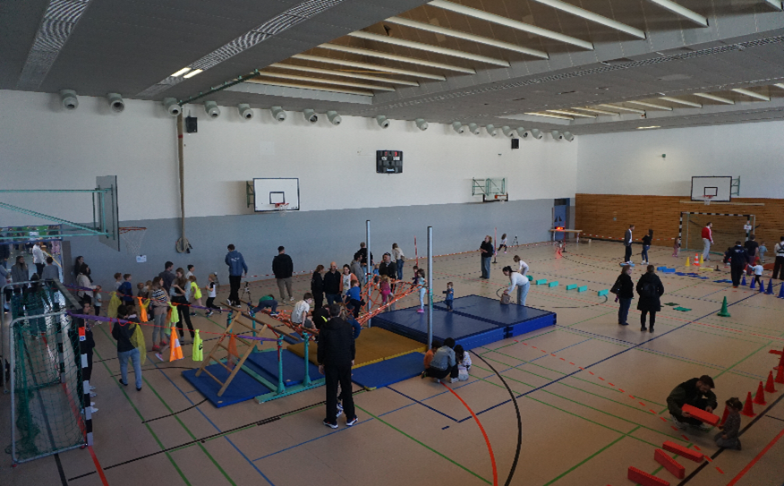 Kinder, Eltern und Großeltern erlebten einen bewegten Nachmittag in den Sporthallen in Pattonville, konnten sich bei vielen verschiedenen Stationen sportlich austoben und verließen die Halle mit lachenden Gesichtern.