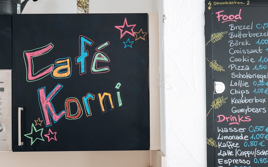 Das Café Korni ist ein Treffpunkt für Jugendliche mitten in der Stadt. Hier kannst du chillen, Freunde treffen, lernen und dich wie zu Hause fühlen.
