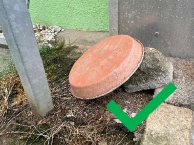 - Vermeiden Sie Wasseransammlungen, indem Sie Gefäße umgedreht lagern oder abdecken